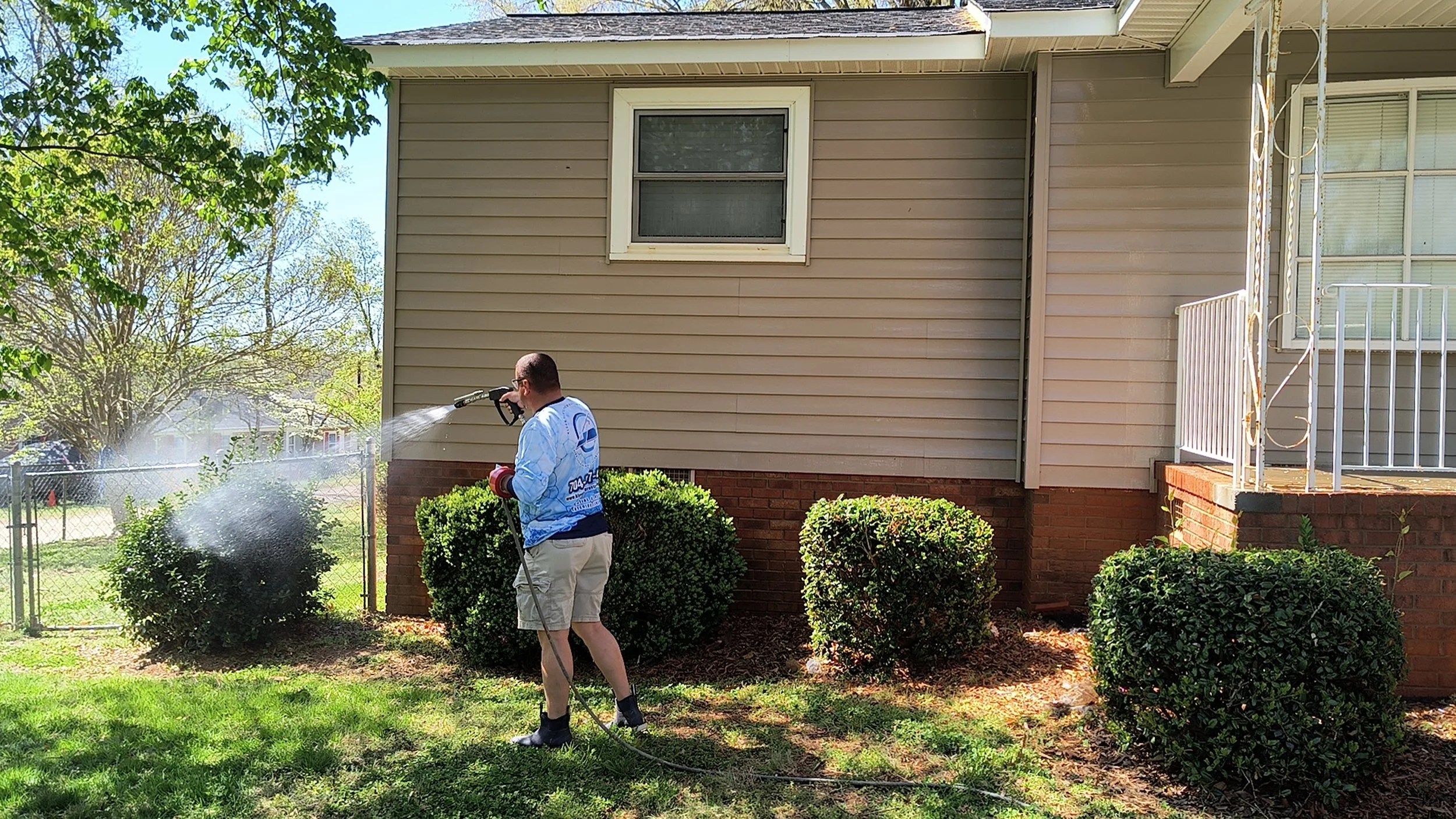 Our services include Soft-Washing the exterior of the home using low-pressure, high-volume equipment that prevents damage unlike the high-pressure alternative. The soft-washing process will clean all organic, dirt, debris, webs, and nests from the siding, windows, doors, trim, soffits, porches, and foundation. Our soaps are diluted down through pro-portioner systems making it safe to use around plants, stained wood, and sensitive parts of the property. The soaps contain a mix of approximately 1% sodium hypochlorite and water; they will break down and remove organic growth from the pores of the surface to keep the surface cleaner for a longer period of time.
